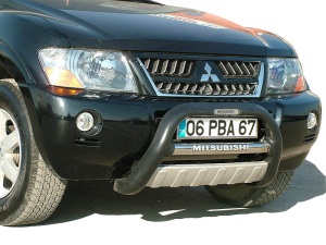Передний ус. Устанавливается под бампер, чтоб защищать его. Так же имеет много вариаций конструкции - одинарная труба, двойная труба, а так же труба с грилем. Диаметр трубы по вашему желанию 42мм, 51мм, 60мм или даже 70рр. Мы стараемся в наличии держать все варианты. Разрешен в Европе