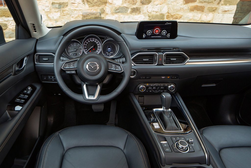 Самые внушительные изменения получил слон Mazda CX-5. Появился подогреваемый многофункциональный руль другого исполнения. Кресла стали более комфортны даже для людей различных форм. Отделочные материалы интерьера очень даже впечатляют. На некоторых моделях такое качество встречается только в самых дорогих комплектациях. Мультимедийная система имеет 7-дюймовый дисплей, появляющийся из торпедо. В самой дорогой модификации информация может выводиться на лобовое стекло, где, кстати, сообщается о движущемся транспорте в «слепых» зонах.