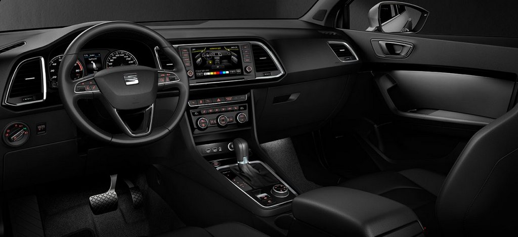 В салоне Seat Ateca вполне комфортно, уютно и места хватает. Также здесь будет хорошо себя чувствовать человек почти баскетбольного роста. Для задних пассажиров предлагается отдельные дефлекторы обдува и центральный подлокотник. Качество отделочных материалов не супер, но вполне приемлемое. Водительское сиденье имеет множество регулировок, которые позволяют настроить кресло под себя. Информация с приборной панели считывается легко, а все органы управления находятся под рукой. Объем багажного отделения в 5-местном варианте составляет 485 л.