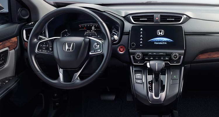 В салоне нового кроссовера замечается значительно улучшенное качество отделочных материалов. Обновилась приборная панель, рулевое колесо и консоль, над которой располагается сенсорный экран на семь дюймов мультимедийной системы. Есть возможность подключения мобильных приложений Android Auto и Apple CarPlay. Любители Honda CR-V обязательно обратят внимание на то, что селектор коробки передач по-прежнему расположен на отдельной возвышенности, которая является частью центральной консоли.