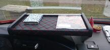 Практичная полка для панели приборов, подходит для Volkswagen LT 1995–2006 годов выпуска. Выполнена в черном цвете с красной строчкой.